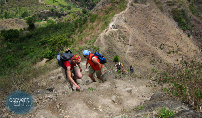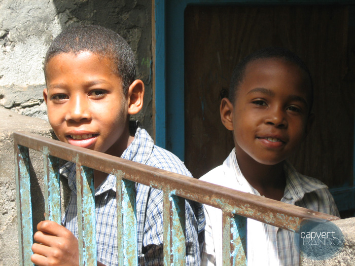 Après le petit déjeuner, nous traversons deux vallées. L'apprentissage rapide de quelques mots en créole capverdien nous permet d'aller un peu plus loin dans nos échanges avec les petits agriculteurs que nous croisons. Après quelques moments de convivialité dans le village autour d'un jeu de cartes ou au comptoir de la mercerie, une famille nous accueille pour la nuit : le dîner est un pur délice. Moment fantastique de simplicité et d'humanité.