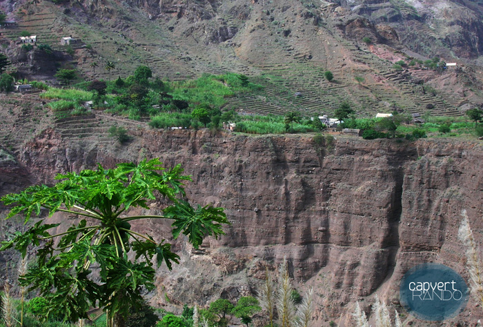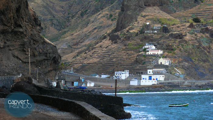 Après le petit déjeuner, nous traversons deux vallées. L’apprentissage rapide de quelques mots en créole capverdien nous permet d’aller un peu plus loin dans nos échanges avec les petits agriculteurs que nous croisons. Ici il est tout simplement inimaginable de croiser quelqu'un sans saluer d'un sourire et d'un petit mot sympathique. Après quelques moments de convivialité dans le village autour d’un jeu d'awalé (l'ouril) ou au comptoir de la petite mercerie locale, une famille nous accueille pour la nuit : le dîner est un pur délice. Moment fantastique de simplicité et d’humanité.