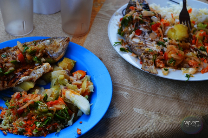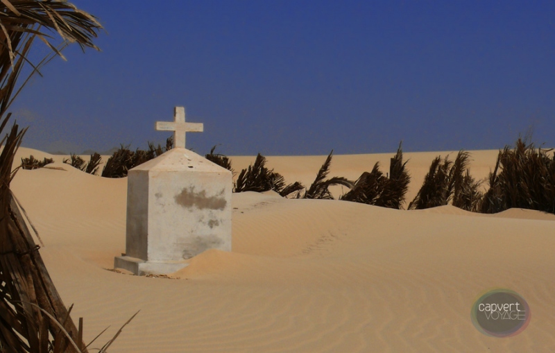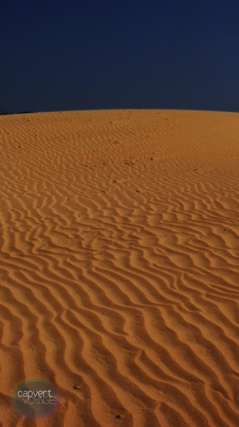 Nous sortons de la minuscule ville qui fait office de capitale pour cette grande île et nous nous dirigeons vers l'intérieur magique de Boavista. Nous passons devant les grands hôtels 'all-inclusive' et nous nous éloignons petit à petit de la civilisation. Nous voici immergés dans un air chargé du sel de la mer omniprésente, chargé également de sable (jusque dans les bagages, preuve de notre passage sur l'île surnommée l'île aux dunes). Le contraste des couleurs, l'isolement, les grands horizons: il ne manque plus que Robinson Crusoé. Nuit & dîner dans des grottes à 30 mètres de la mer.